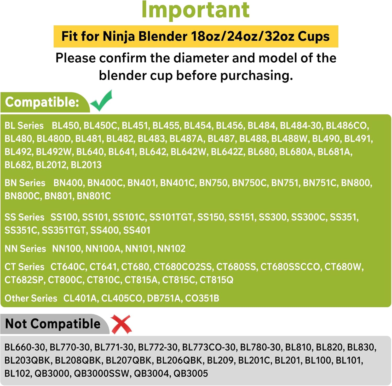 These replacement lid options are compatible with a wide range of Ninja blender models, including BL450, BL450C, BL451, BL454, BL455, BL480, BL480D, BL481, BL482, BL483, BL484, BL484-30, BL486CO, BL487, BL487A, BL488, BL488W, BL490, BL491, BL492, BL492W and many others. Ensure a secure fit with the specified inner diameter and outer dimensions for optimal performance.